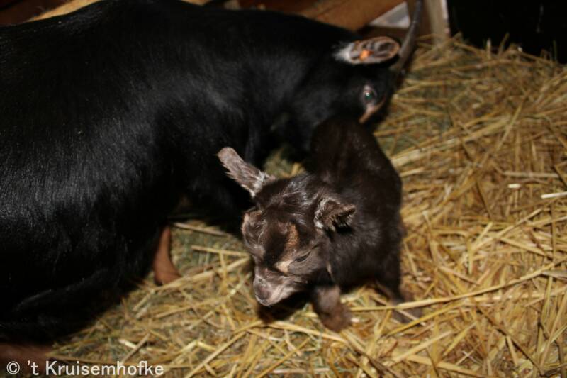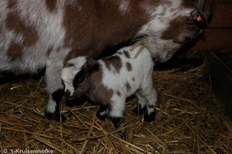 Isabo werd moeder van 3 bokjes! Jammer genoeg werd het bruinstippel bokje niet geaccepteerd door Isabo.